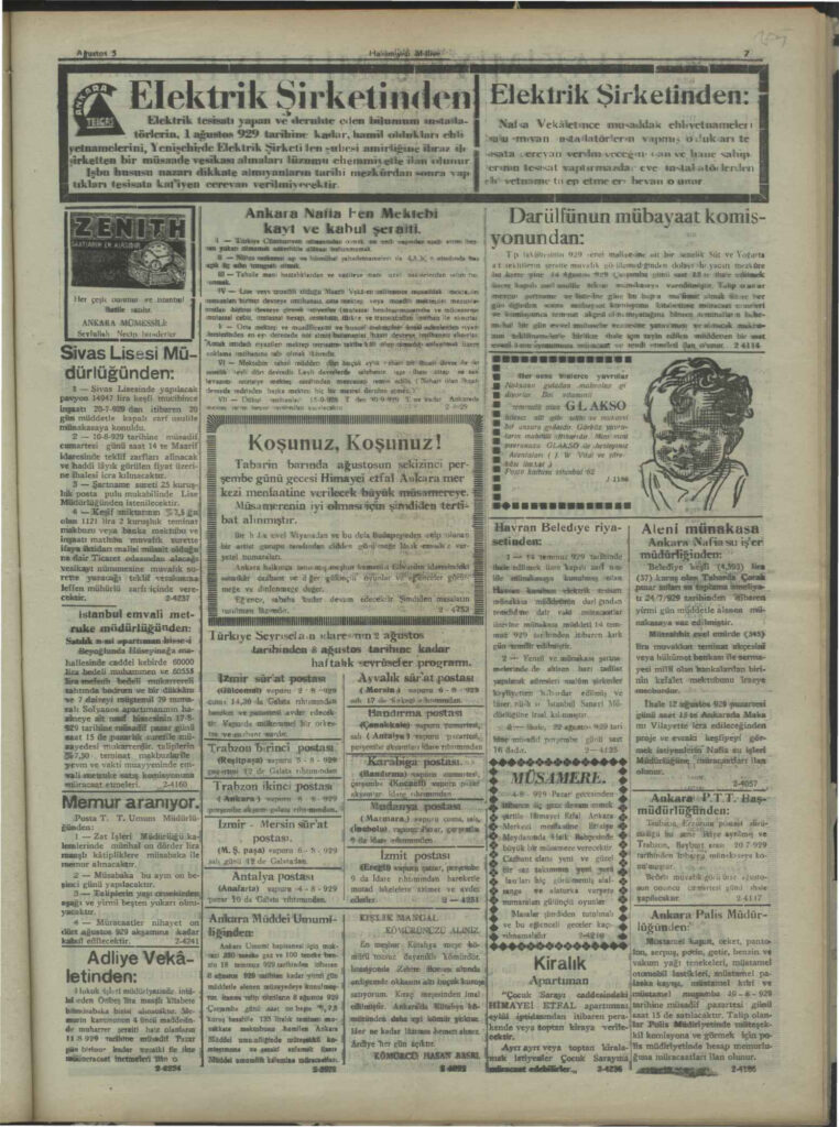 5 Ağustos 1929 tarihinde Hakimiyeti Milliye Gazetesi 7. sayfada yer alan 4-8 Ağustos 1929 tarihleri arasında Himayei Etfal Ankara merkezi için verilecek müsameriyi bildiren haberdir. Hakimiyeti Milliye Gazetesi.