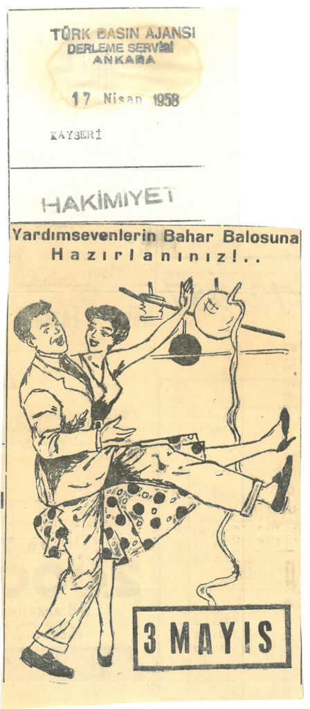 17 Nisan 1958 tarihinde Hakimiyet gazetesinde yer alan haberde 3 Mayısta gerçekleşecek olan baloya hazırlanıldığı ifade edilmektedir.