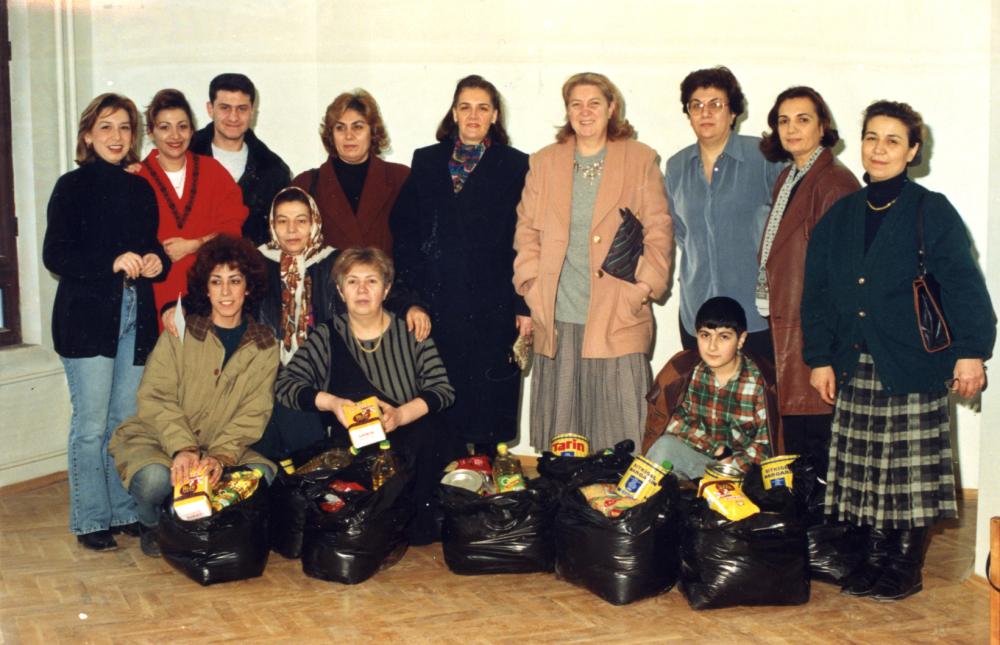 1996 yılında yapılan Gıda Yardımı’na ait görüntü yer almaktadır. Türkiye Yardım Sevenler Derneği.
