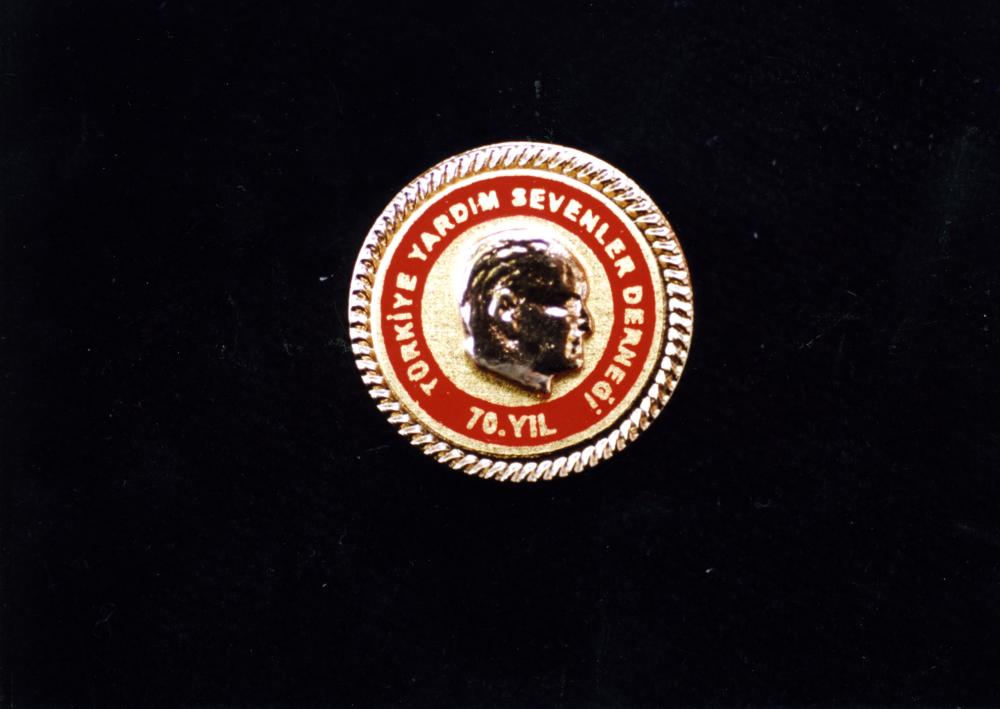 70. yıl hatıra rozetine ait görüntü yer almaktadır. Türkiye Yardım Sevenler Derneği.
