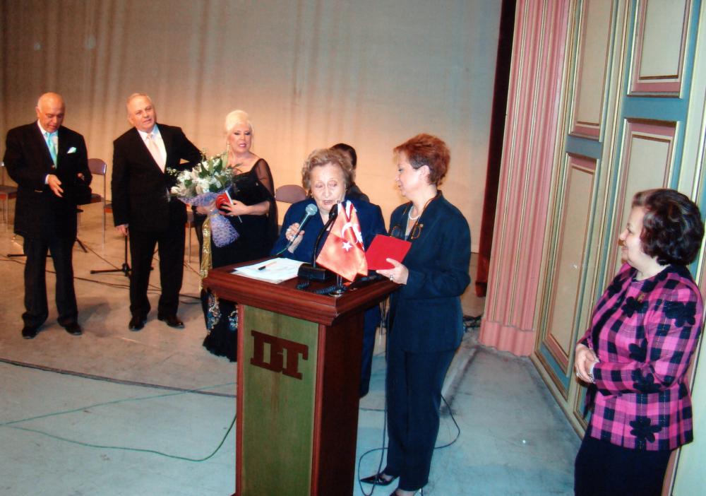 Birsen Eldem’in konuşma yaparken görüntüsü yer almaktadır. Türkiye Yardım Sevenler Derneği.