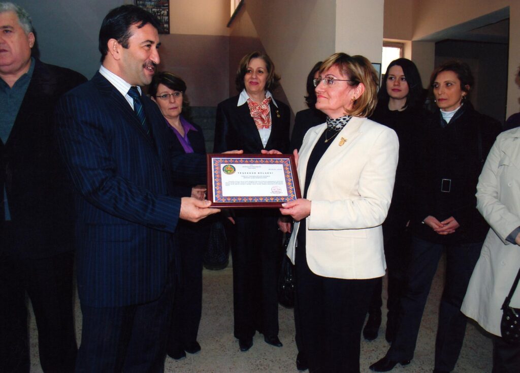 Akhisar Şubesi Mustafa Çek’in Teşekkür Belgesi verdiği görüntü yer almaktadır. Türkiye Yardım Sevenler Derneği.