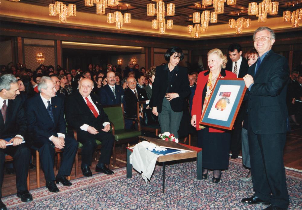 Bayan Demirel’e tablo hediye edilmesine ait fotoğraflar yer almaktadır. Türkiye Yardım Sevenler Derneği.
