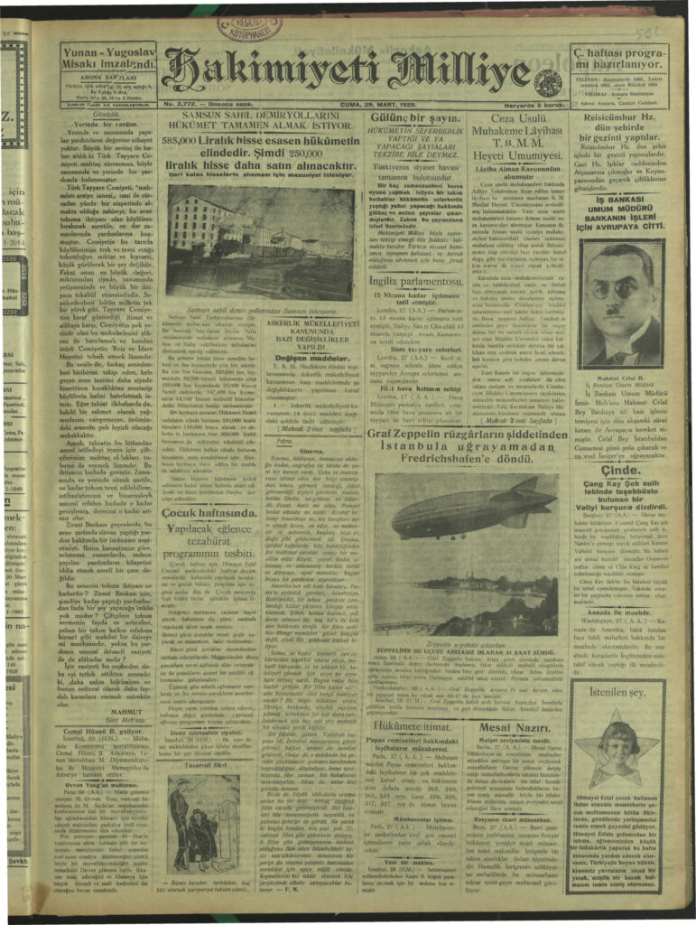 29 Mart 1929 tarihinde Hakimiyeti Mİlliye Gazetesi’nde yer alan Çocuk haftasında yapılacak eğlence ve tezahürat programının tespitini bildiren haberdir. Hakimiyeti Milliye Gazetesi.