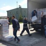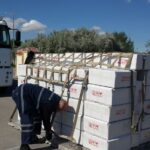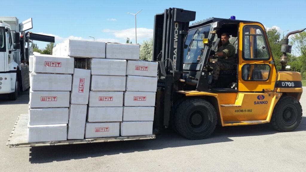 Etimesgut Havaalanına taşınan paketler ile ilgili fotoğraflar yer almaktadır. Türkiye Yardım Sevenler Derneği.