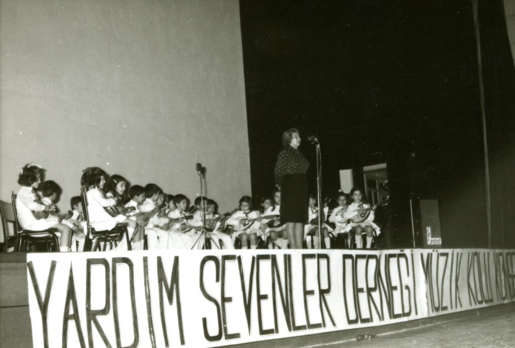 Gölcük şubesinin 1976 yılındaki yıl sonu konserine ait fotoğraf yer almaktadır. Türkiye Yardım Sevenler Derneği.