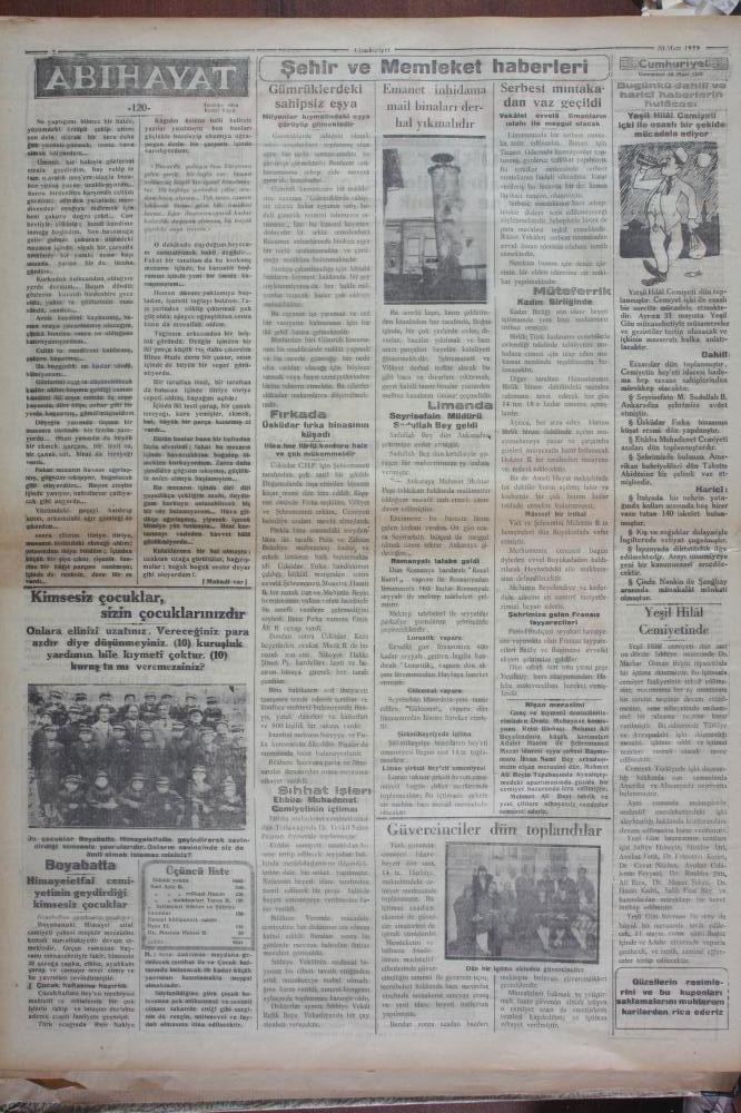30 Mart 1929 tarihinde Cumhuriyet Gazetesi’nde yer alan Himayei Etfal Cemiyeti’nin Boyabatlı kimsesiz çocuklara yaptığı yardımı bildiren haberdir.