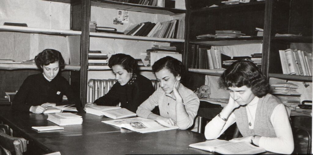 Kız öğrenci yurdu ilk yıllarına ait fotoğraf yer almaktadır. Türkiye Yardım Sevenler Derneği.