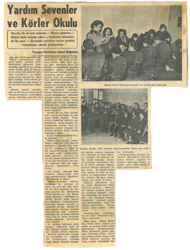 Yardım Sevenler Derneğinin Körler okulu ziyaretini içeren haberdir.