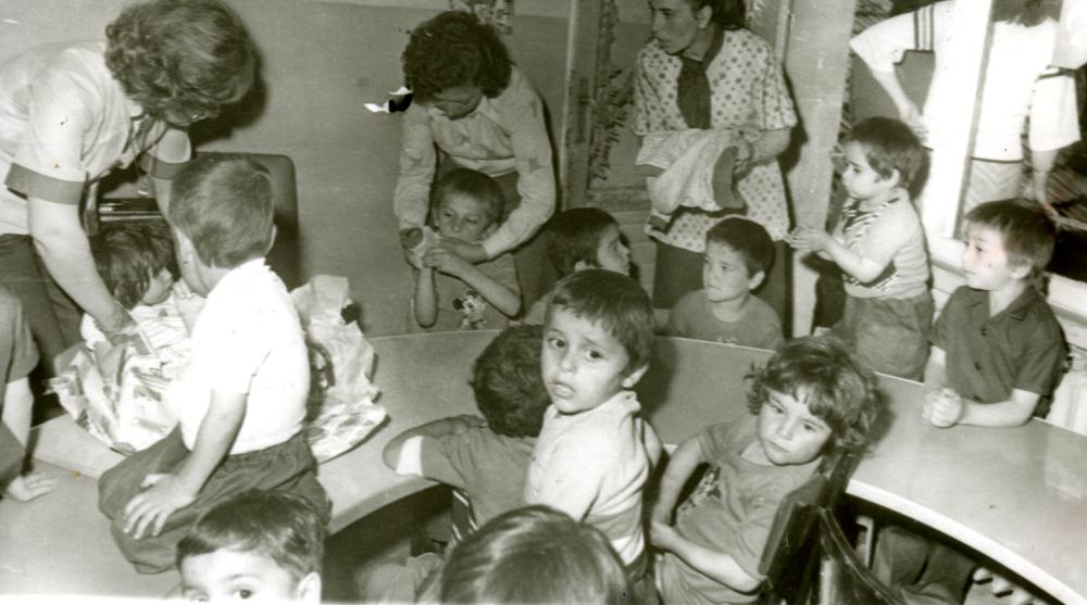 1954 yılında Kütahya 65 çocuğa giysi yardımına ilişkin fotoğraf yer almaktadır. Türkiye Yardım Sevenler Derneği.