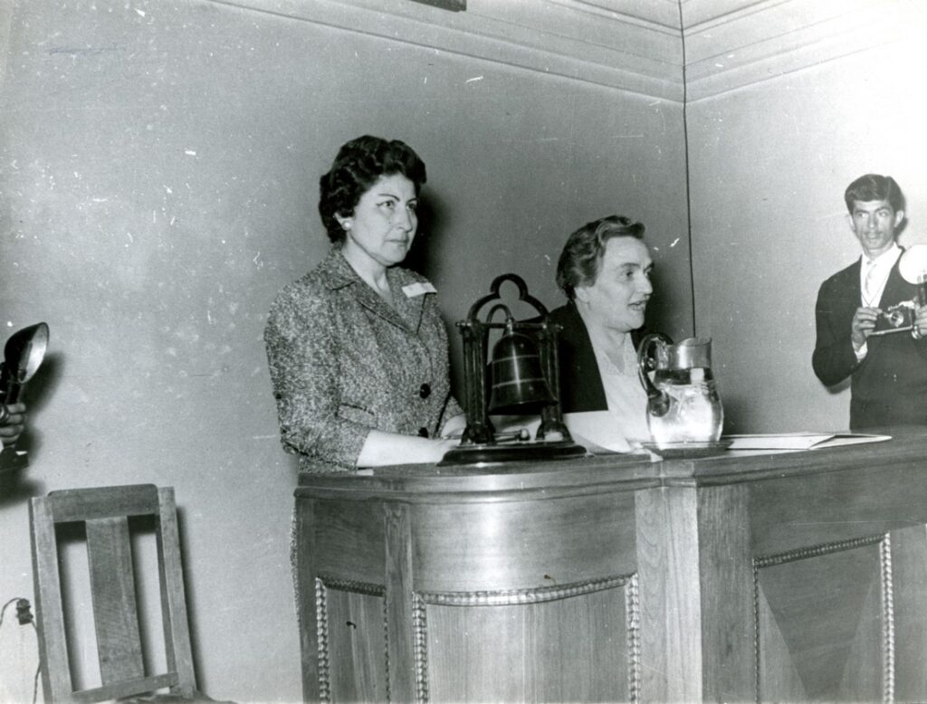 Mediha Eldem’in konuşmasına ait fotoğraf yer almaktadır. Türkiye Yardım Sevenler Derneği.
