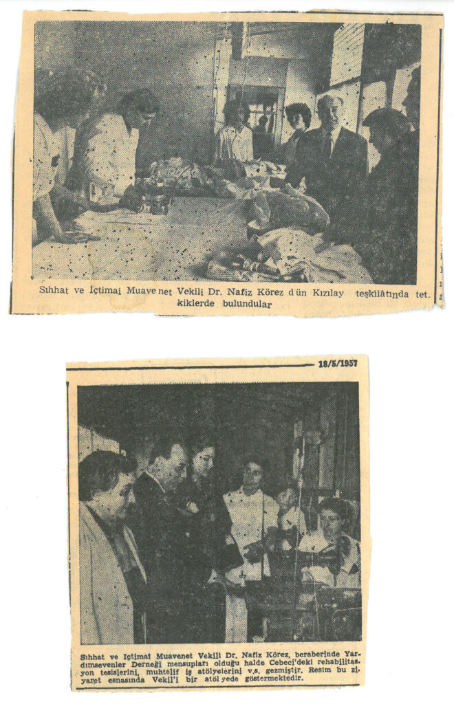 18 Mayıs 1957 tarihinde Sıhhat ve İçtimai Muavemet vekili Dr. Nafiz Körez’in Yardım Sevenler ile birlikte Kızılay’ı ziyaret ettiğini gösteren haberdir.
