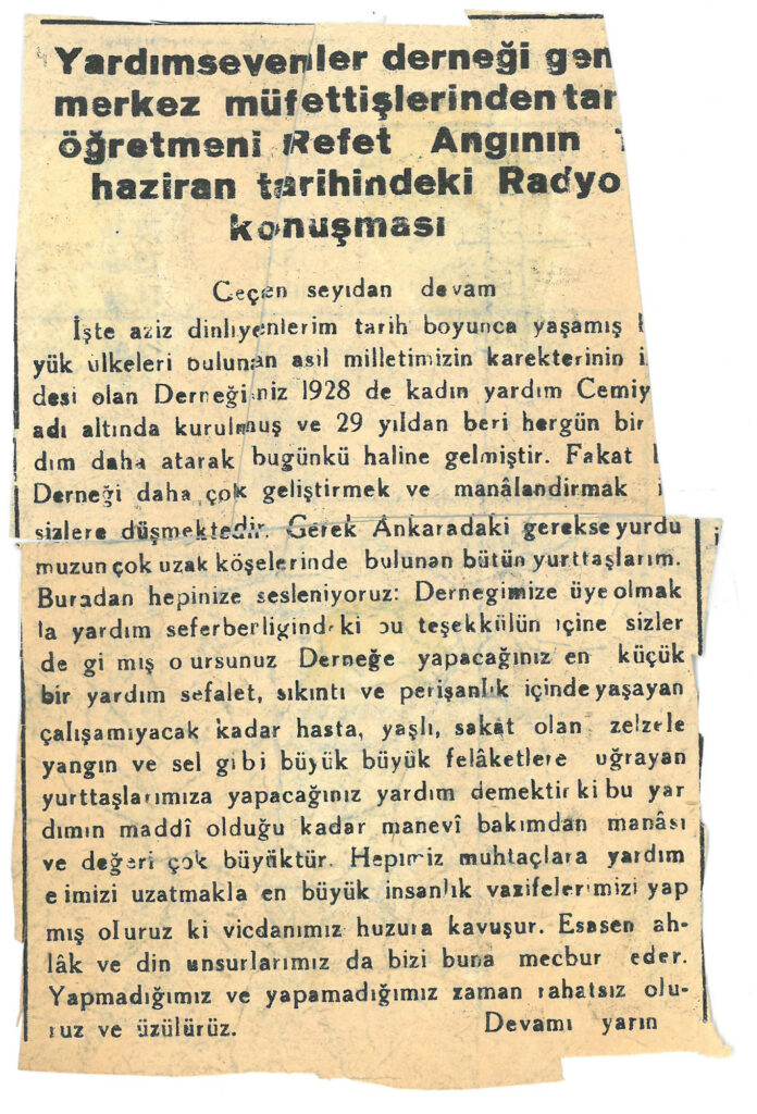 Yardım Sevenler Derneği genel merkez müfettişlerinden Rafet Angın Radyo Konuşmasını içeren haberdir.