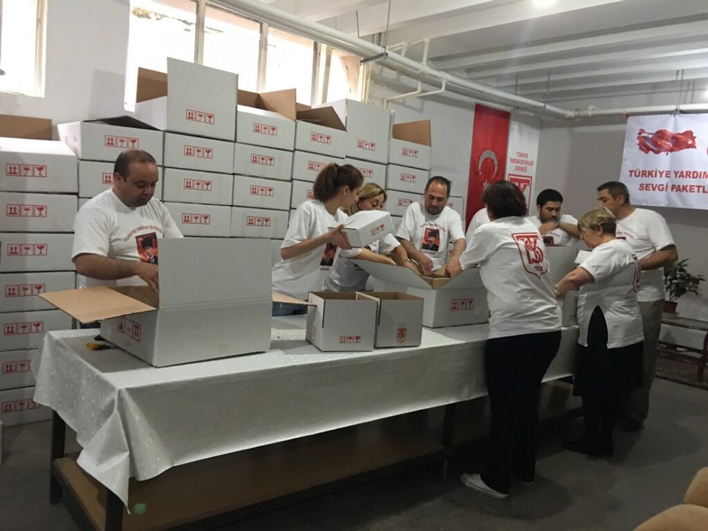 19 Nisan tarihinde Sevgi Paketleri ile ilgili çalışma fotoğrafları yer almaktadır. Türkiye Yardım Sevenler Derneği.