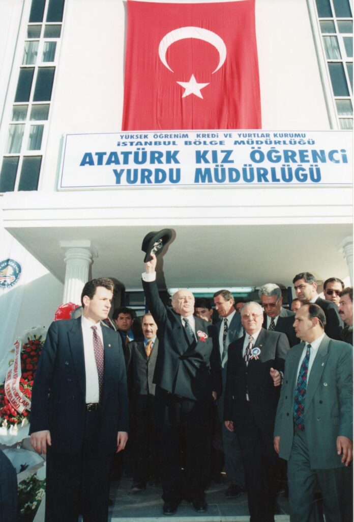 Süleyman Demirel’in Atatürk Kız öğrenci yurdu açılışına ait fotoğraf yer almaktadır. Türkiye Yardım Sevenler Derneği.