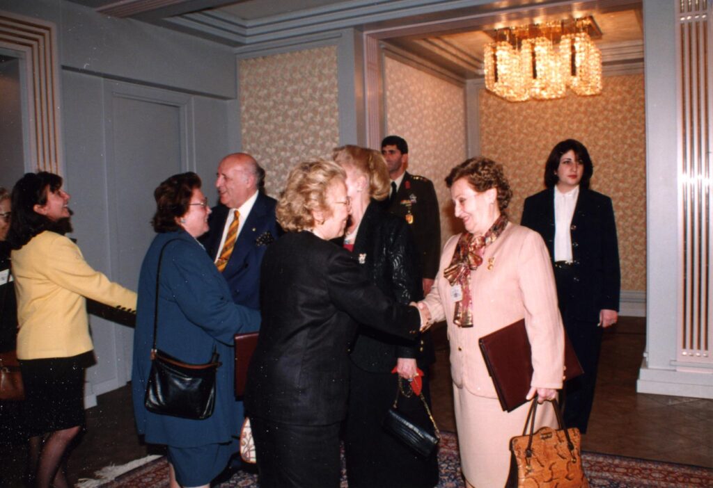 Süleyman Demirel ve Birsen Eldem’in karşılama anına ait fotoğraflar yer almaktadır. Türkiye Yardım Sevenler Derneği.