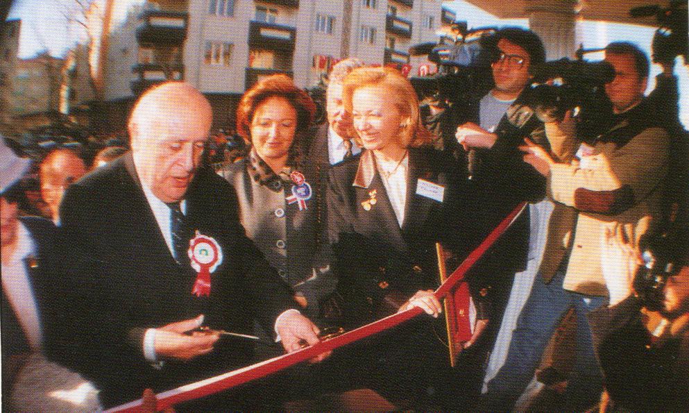 Süleyman Demirel’in kurdela kesmesine ait fotoğraf yer almaktadır. Türkiye Yardım Sevenler Derneği.