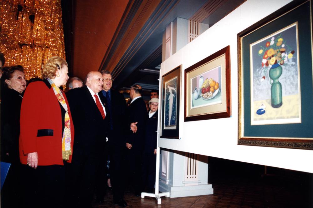 Süleyman Demirel’in sergi gezisine ait fotoğraf yer almaktadır. Türkiye Yardım Sevenler Derneği.