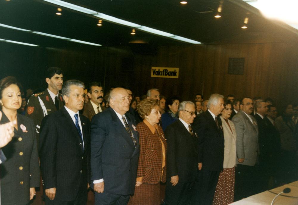 Süleyman Demirel ve Birsen Eldem’in saygı duruşuna ait fotoğraf yer almaktadır. Türkiye Yardım Sevenler Derneği.