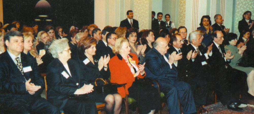 Süleyman Demirel ve eşinin katıldığı kutlama gecesine ait fotoğraf yer almaktadır. Türkiye Yardım Sevenler Derneği.