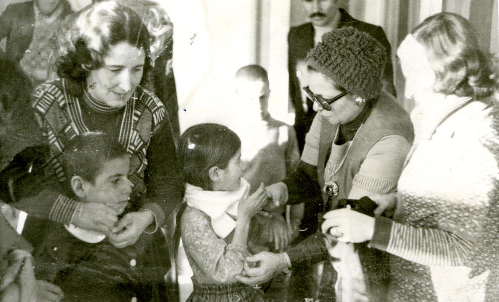 1972 yılında Tunceli de çocuklara yapılan giysi yardımına ait fotoğraf yer almaktadır. Türkiye Yardım Sevenler Derneği.