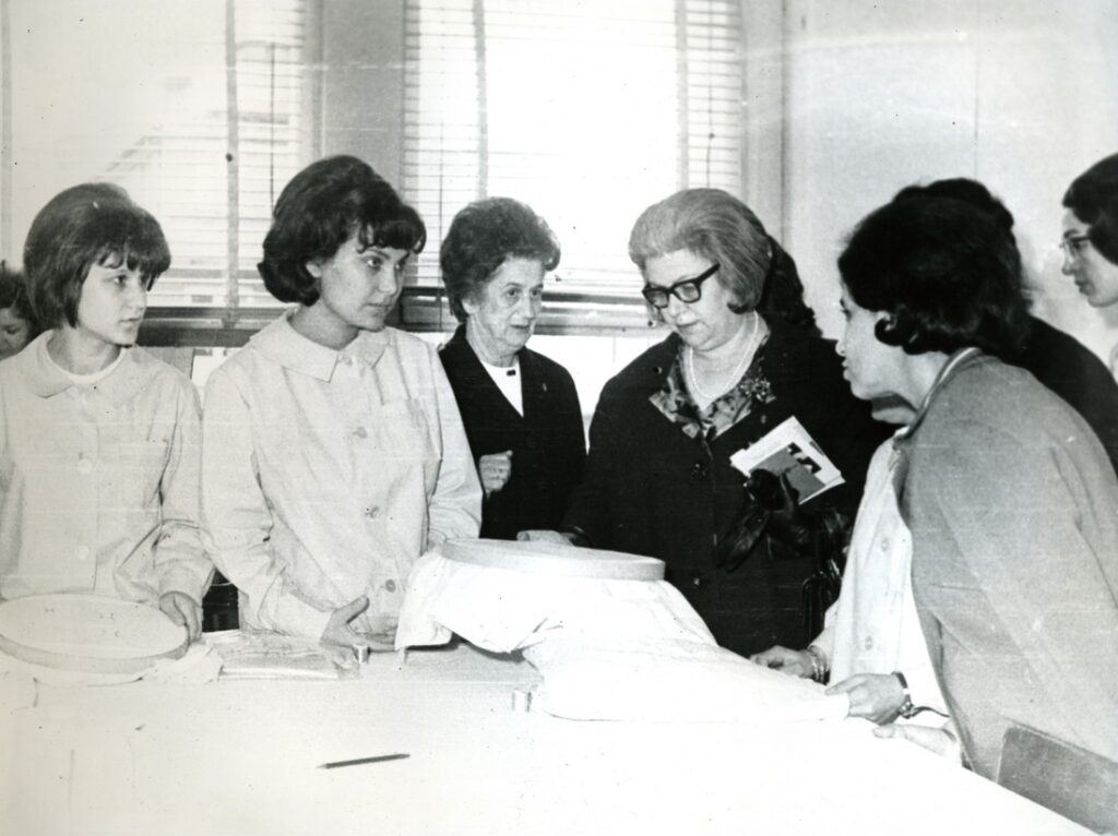 1972 yılında Tunus Cumhurbaşkanı eşi Bayan Burgiba ve Bayan Gürsel’in ziyaretine ilişkin fotoğraf yer almaktadır. Türkiye Yardım Sevenler Derneği.