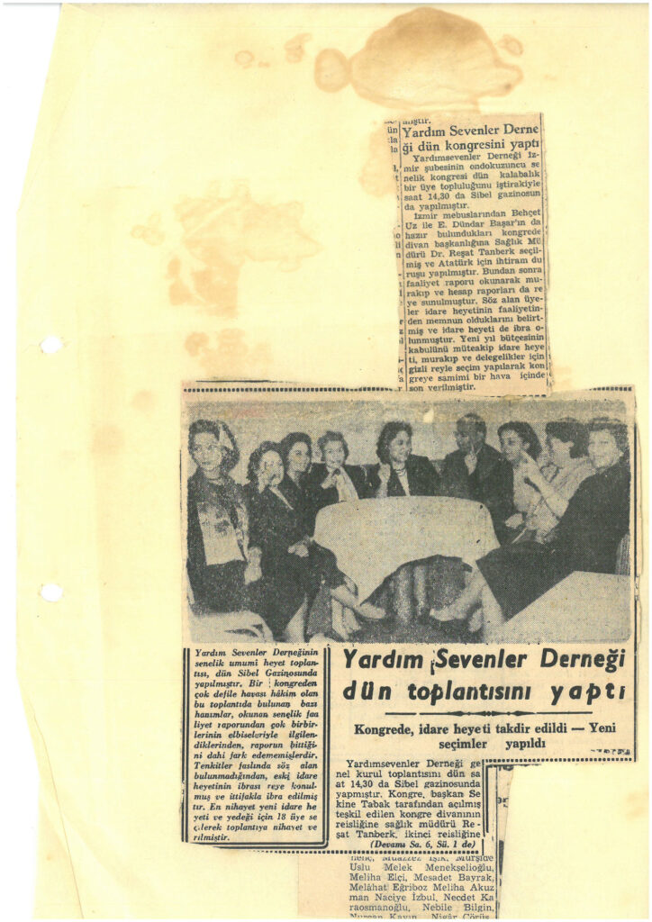Yardım Sevenler Derneği İzmir şubesinin 19. yıllık kongresi ve Yardım Sevenler Derneği umumi toplantısının yapıldığını bilgisini içeren haberlerdir.