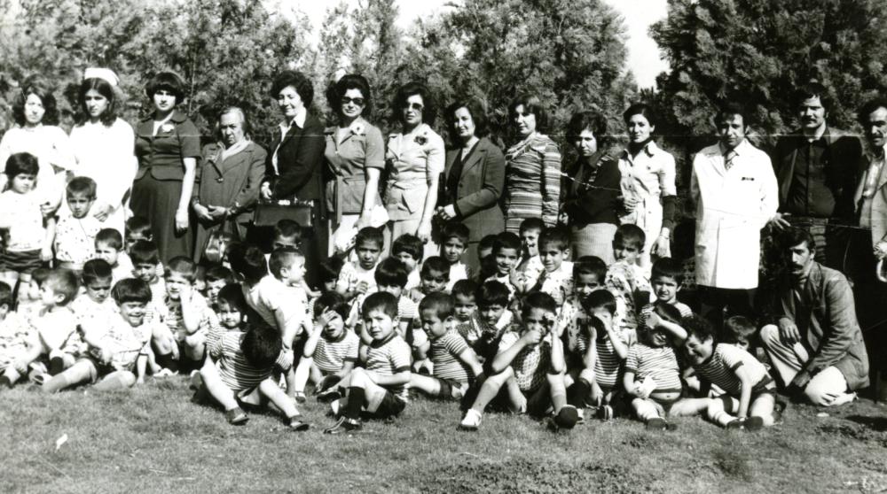 1977 yılında yuva çocuklarına yapılan yardıma ait fotoğraf yer almaktadır. Türkiye Yardım Sevenler Derneği.