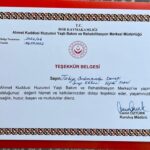 Ahmet Kuddusi Huzurevi ve Rehabilitasyon Merkezi tarafından Derneğimize Teşekkür Belgesi vererek bizleri onurlandırdı.